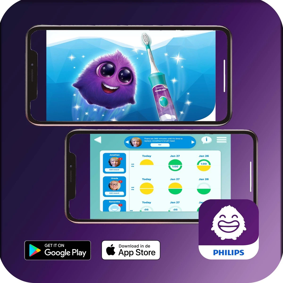 Om een goede tandenpoetsroutine te stimuleren, maakt de Philips Sonicare For Kids elektrische tandenborstel met Bluetooth verbinding met de app, om kinderen te helpen de poetstijd langzaam te verlengen. Het doel is om de door tandartsen aanbevolen twee minuten te bereiken. De kinderen moeten met de app de poetscoach van de app nadoen, die nauwkeurig elk kwadrant van het gebit poetst. De poetscoach moedigt jouw kind aan om steeds langer te poetsen op elk kwadrant. Wanneer jouw kind langer poetst, wordt het beloond door Sparkly, die heel blij is met de superschone tanden. Een leuke training voor levenslang goed poetsen.
